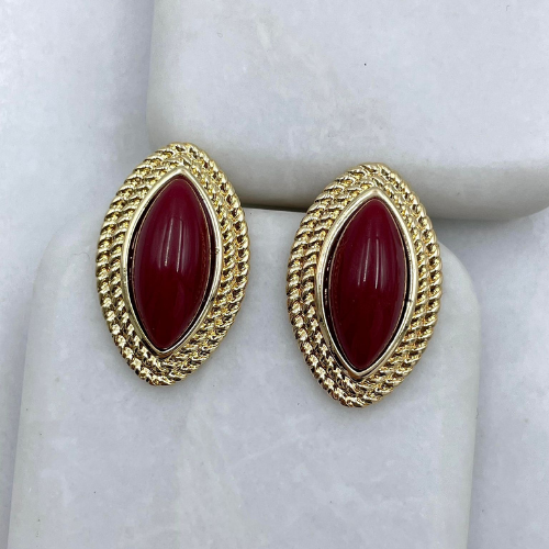 ÖZEL SERİ OVAL BORDO TAŞ DETAYLI KÜPE